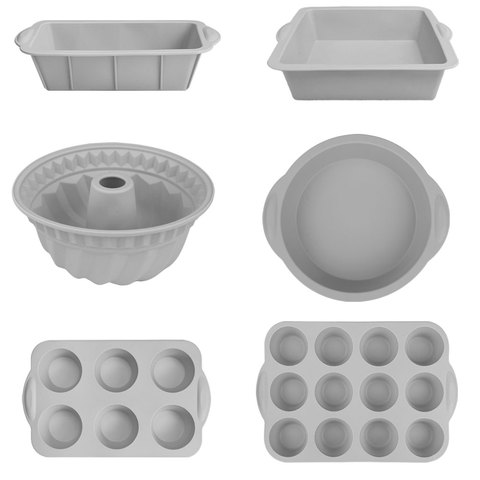 ชุดถาดเค้กซิลิโคนแบบไม่ติดกระทะสำหรับทำเค้กทรงสี่เหลี่ยมกลมและชุดถาดอบซิลิโคนสำหรับทำเค้กมัฟฟิน